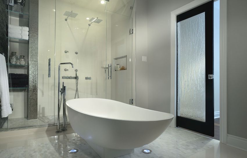 Vonios durys pagamintas iš reljefinio matinio stiklo