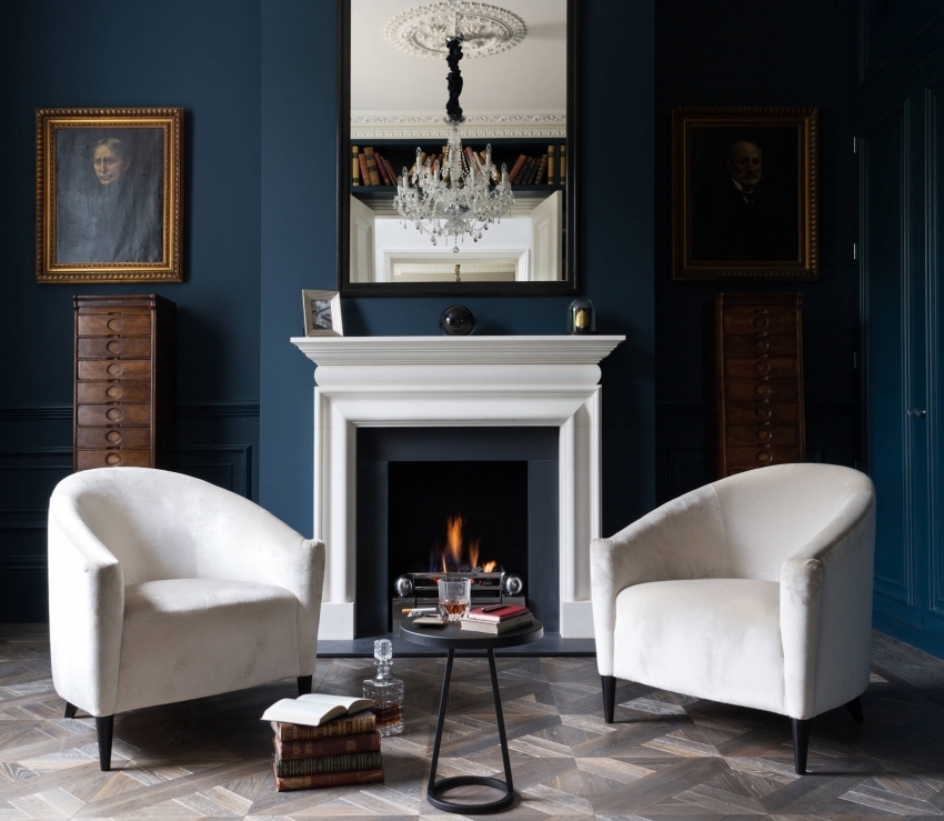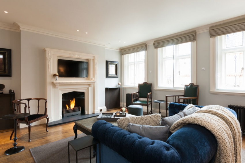 Klasikinis dizainas puikiai tinka židiniui miegamajame ar svetainėje. Anglų dizaino kryptis yra populiari tarp butų savininkų.