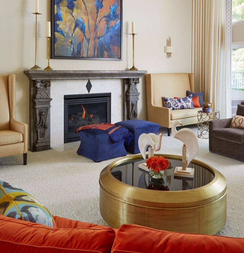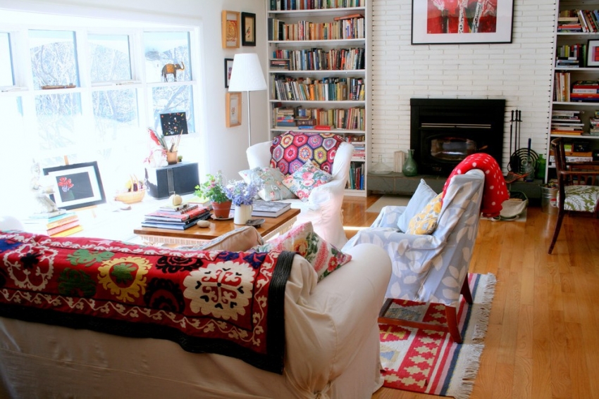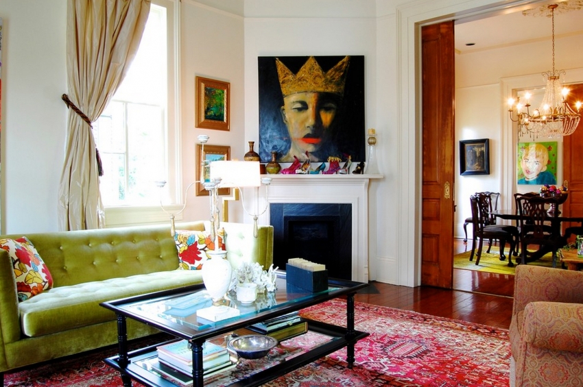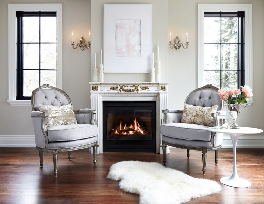 Nepaisant draudimo naudoti naujus daiktus, leidžiama įrengti modernų elektrinį židinį interjere, tokių kambarių nuotraukos yra prisotintos romantikos, naudojant tinkamus dekoro elementus ir baldus.