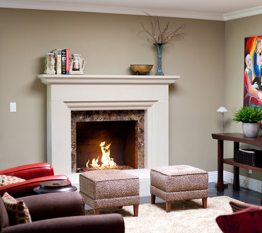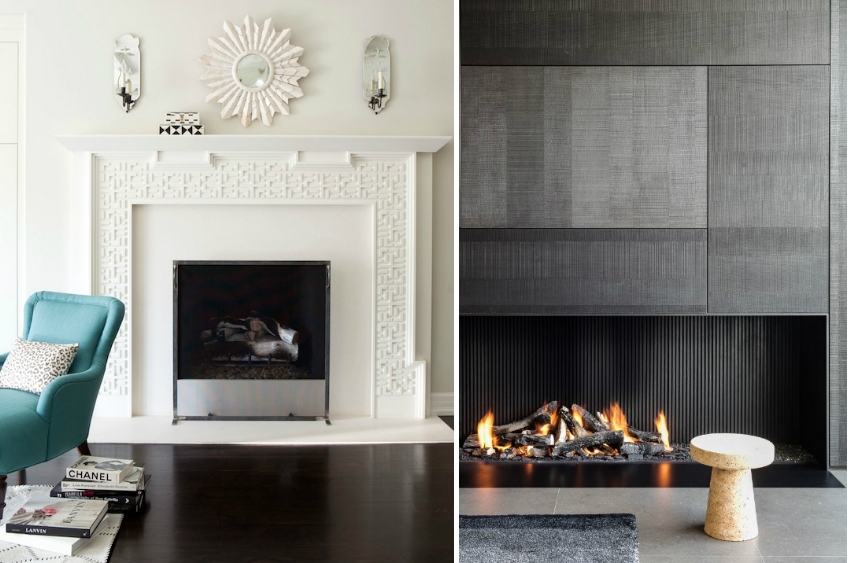 Židinio portalas gali būti dekoruotas kontrastingais atspalviais, daugiausia dėmesio skiriant židiniui