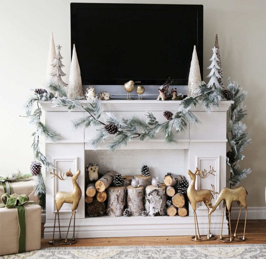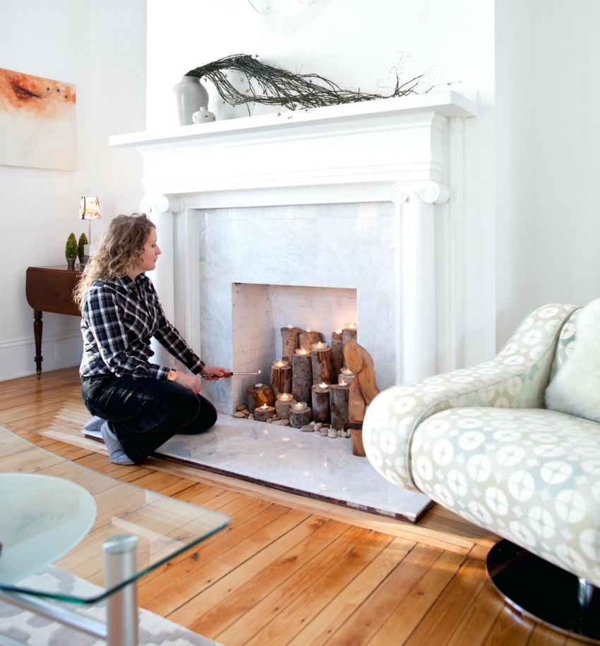 Jei žvakės nebus naudojamos, pagrindo dekoravimui galima naudoti medinę lentyną ar stiklą. Parduodant galite rasti dirbtines žvakių versijas su lemputėmis, o ne liepsnomis.Lentynos su mažais niekučiais, knygos, gražūs mediniai rąstai, kurie turi būti dažni, taps puikia nišos puošmena. Ant netikro židinio lentynos galite įdėti lempas, Naujųjų metų girliandas, mažus veidrodėlius, nuotraukas.