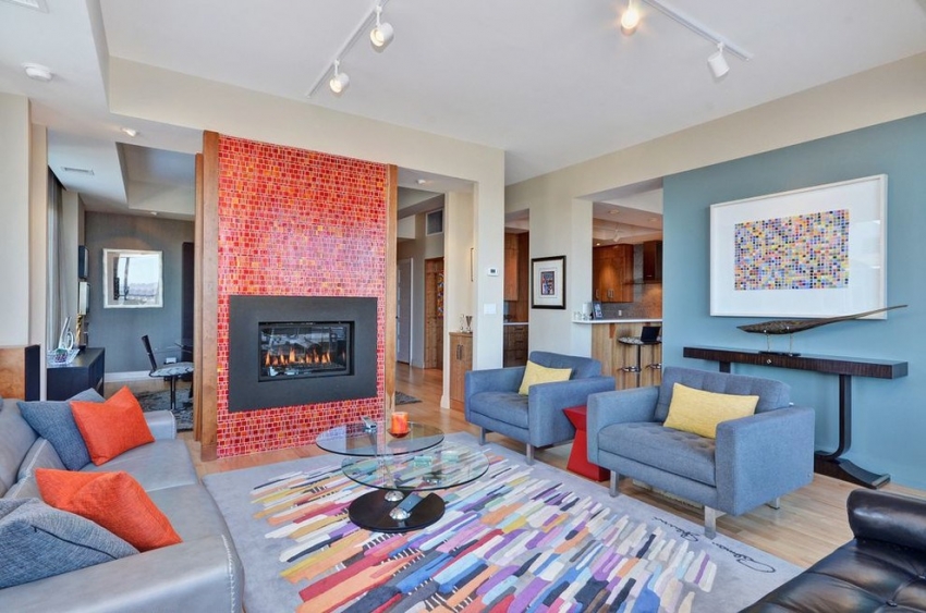Daugiabučių namų savininkai dažniausiai naudoja elektrinį židinį gyvenamojo kambario interjere, tokių konstrukcijų nuotraukų daug randama ne tik tinkle, bet ir dizaino žurnaluose. Tačiau net ir patyrusiems dekoratoriams sunku sukurti aukštųjų technologijų dizainą.