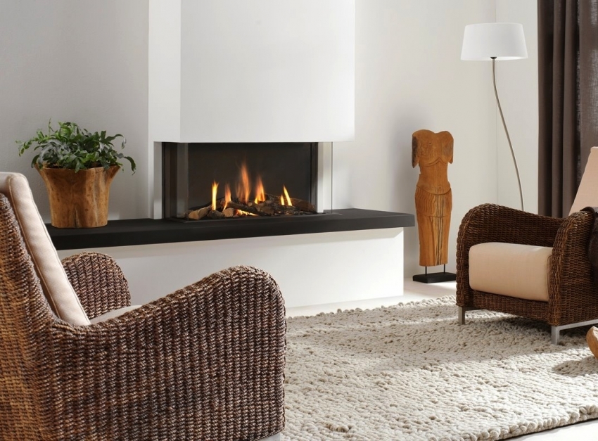 Kaip matyti iš daugelio nuotraukų, mažus kampinius židinius geriausia įrengti patalpose, kurių plotas ne didesnis kaip 25 m². Šis alternatyvus būdas maksimaliai išnaudos kampinę kambario erdvę, neslėpdamas naudingų centimetrų palei sienas.