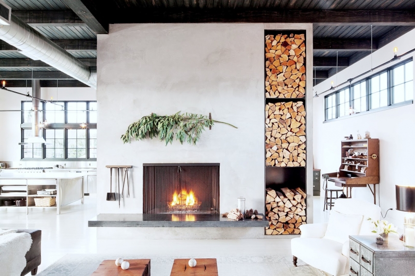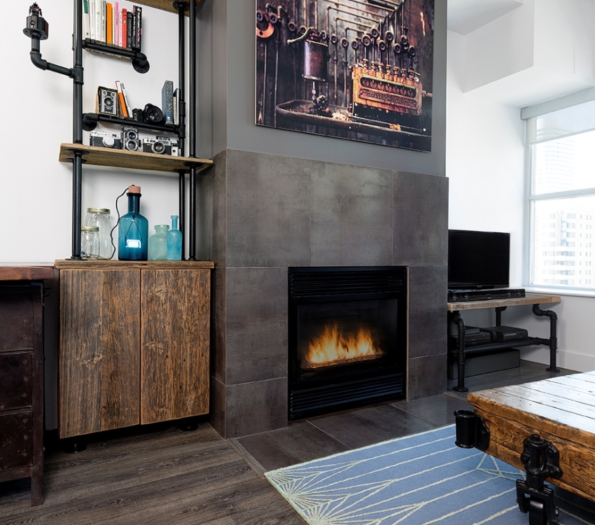 Židinio dizainas pagal šiuolaikinį miesto lofto stilių