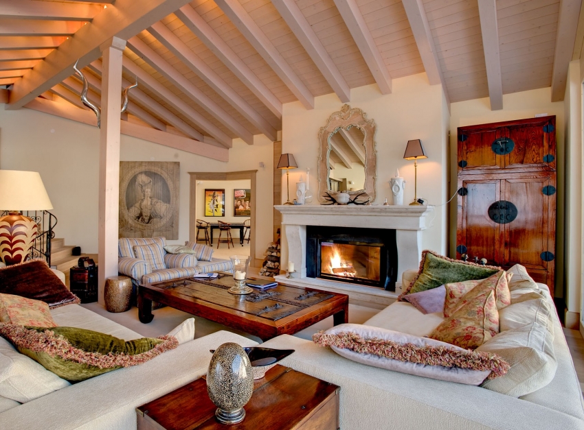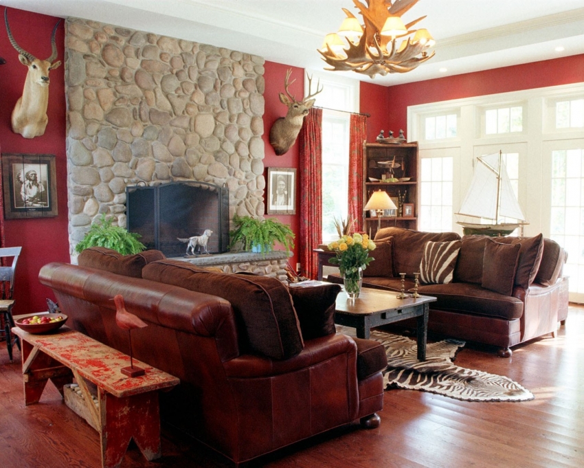 - 2.2 Klaidingų židinių dizainas svetainės interjere: kaimiško stiliaus kambarių nuotraukos