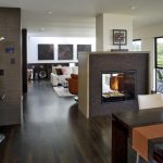 Įmontuoto elektrinio židinio, dvipusio ir salinio, dizainas puikiai atitiks studijos tipo apartamentų erdvę, kur baldai yra išdėstyti zonoje. Prietaisą galima naudoti kaip pertvarą tarp poilsio zonos ir valgomojo. Dėl to bus galima ne tik zonuoti kambarį, bet ir šildyti erdvę abiejose pertvaros pusėse.