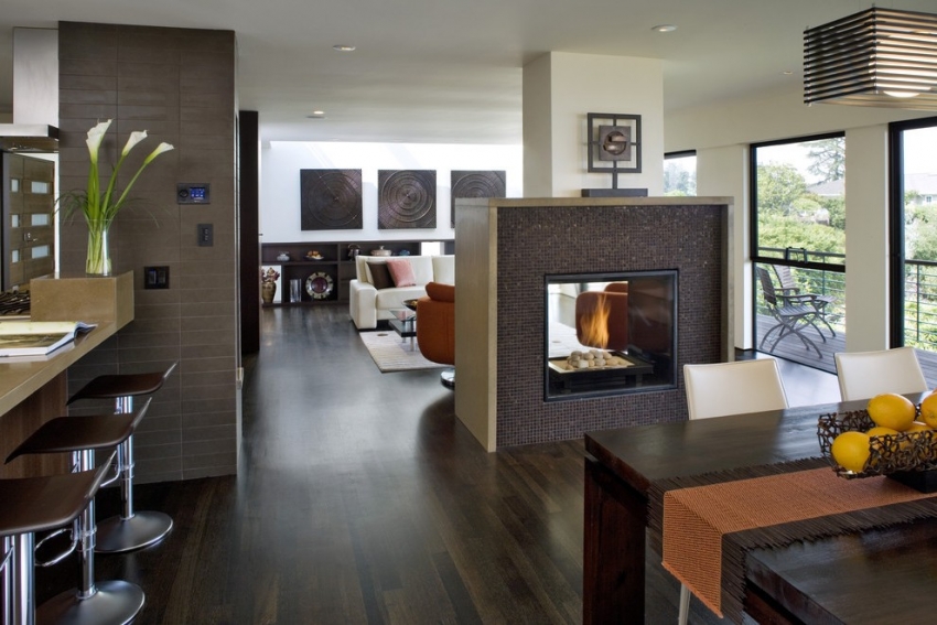 Kaip integruoti židinį į butą: skirtingų stilių interjero nuotraukos