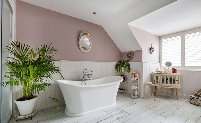 Vannas istabā ir ļoti grūti īstenot interjera dekorēšanu noplucinātā šiks stilā, jo šajā telpā nav praktiski izvietot mēbeles, kas izgatavotas no noplucināta koka, izmantot daudz dekoratīvu un tekstilmateriālu. Tomēr, ja telpai ir stingri izmēri, būs pilnīgi iespējams iedzīvināt romantisko veco dizainu.