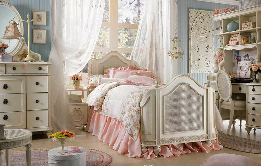 Pusaudžu meitenei patiesu prieku sagādās noplucis šiks guļamistabas interjers. Šāda vide palīdzēs saimniecei kļūt sievišķīgai, iemācīs novērtēt un cienīt ģimenes tradīcijas, izvirzīt ģimeni un tuviniekus priekšplānā.