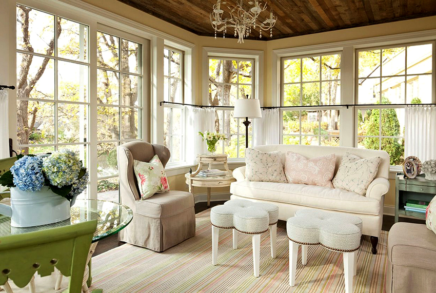 Svarīgs! Noplucinātā šiks interjerā mēbeles jādara gaišās krāsās - tumšu nokrāsu izmantošana nav ieteicama.