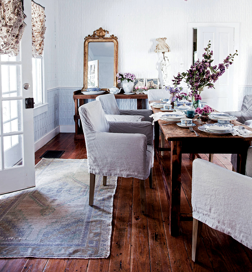 Noderīgs padoms! Romantiski noplucis šiks stilā vecākos dēļus organiskāk izskatīsies kā grīdas segums ar ikgadējiem koka apļiem ar skaidru kontūru.