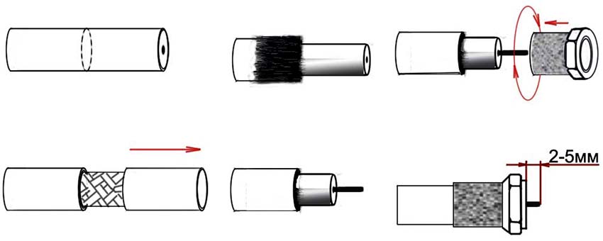 Hasil daripada tindakan yang dilakukan, teras pusat harus menonjol beberapa milimeter di atas penyambung F. Selebihnya inti harus dipotong.