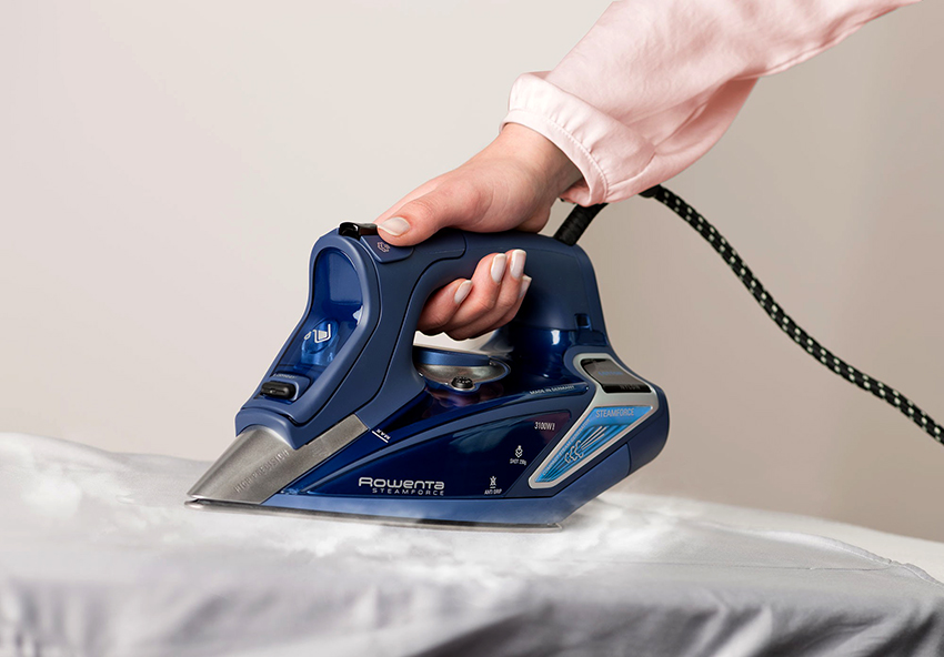 Setrika wap dengan banyak lubang membantu melicinkan pakaian yang kering dan berkerut dengan lebih cepat