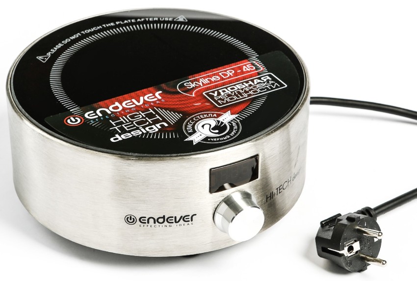 Pilihan yang menarik dengan reka bentuk asal adalah dapur elektrik meja tunggal Skyline DP-45. Aluminium berkualiti tinggi digunakan untuk pembinaan casing. Permukaannya terbuat dari kaca kristal hitam tempered. Kuasa panel adalah 1.5 kW. Model ini mempunyai kawalan elektronik dengan paparan LED dan penyesuaian parameter yang mudah. Kos dapur elektrik ialah 1.9 ribu rubel.