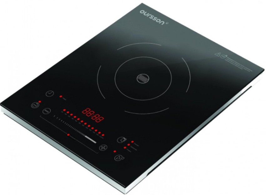 Kompor elektrik Oursson IP1210T / BL mempunyai kawalan sentuh, yang terletak di bahagian depan peranti