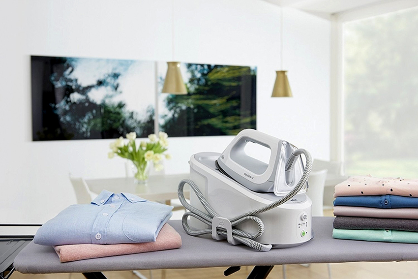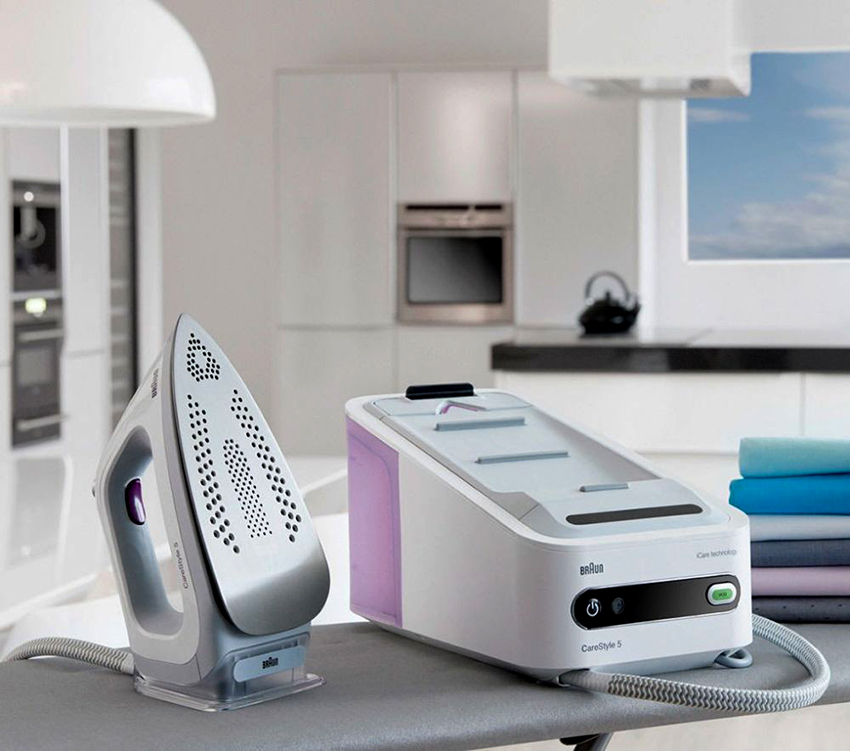 Besi dengan penjana wap. Gabungan sifat besi, pembersih wap dan pengukus dalam satu peranti yang berjaya, yang dengannya anda bukan sahaja dapat menyeterika, tetapi juga membersihkan pakaian dari noda dan bau yang tidak menyenangkan. Alat ini membolehkan menyeterika menegak dan mendatar. Peranti ini dapat digunakan dengan jayanya dalam pengeluaran dan di apartmen.