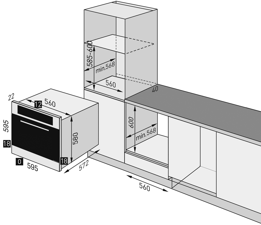 Di bawah meja - Ini adalah variasi pemasangan ketuhar yang paling mudah dan biasa. Skema pemasangan ketuhar jenis ini dibezakan oleh kesederhanaannya dan terletak pada hakikat bahawa ia dipasang tepat di bawah meja di ceruk khas yang dijauhkan dari sink dan peralatan lain. Jenis pemasangan ini menyediakan pemasangan bersebelahan ketuhar dan kompor yang bersebelahan. Hasilnya adalah zon memasak autonomi.