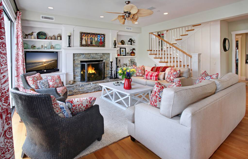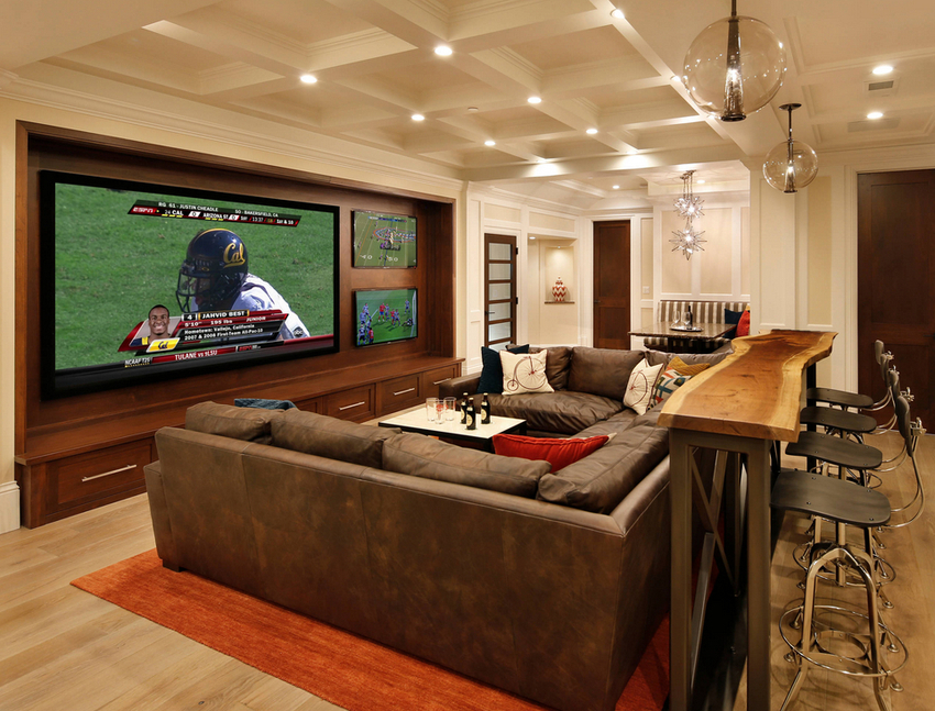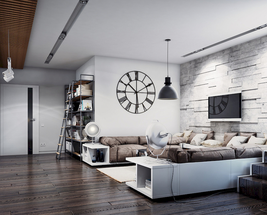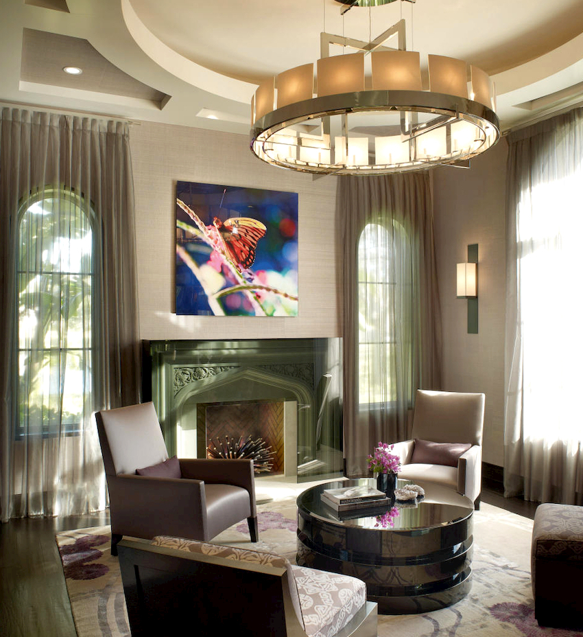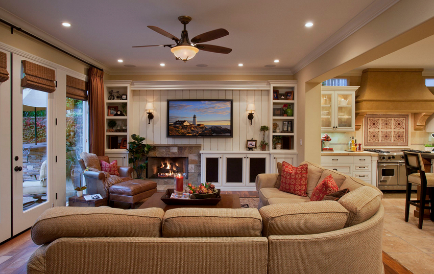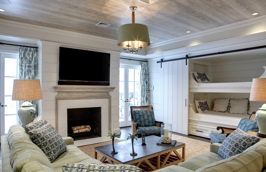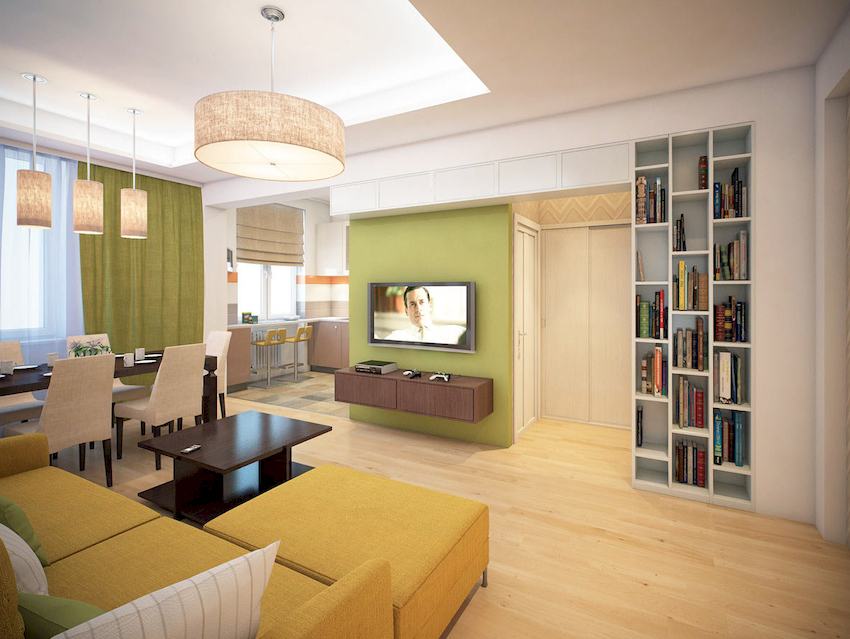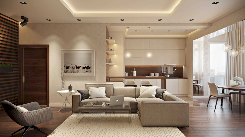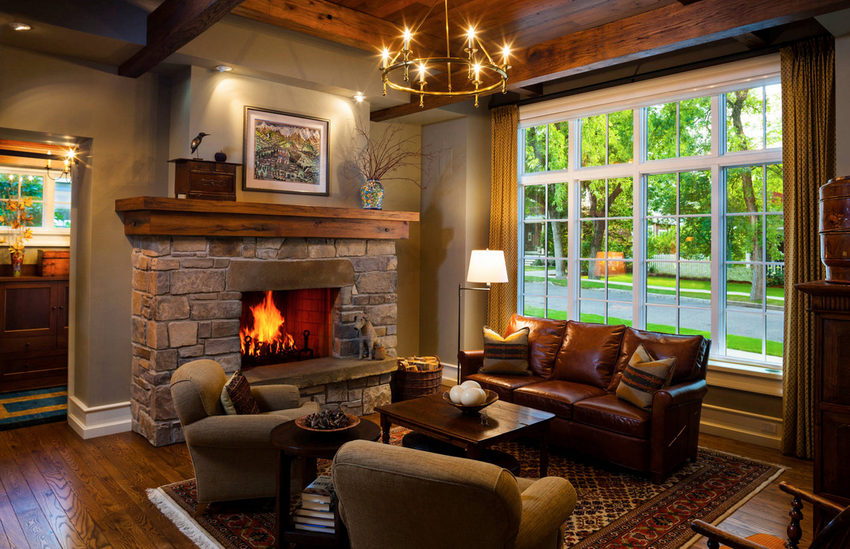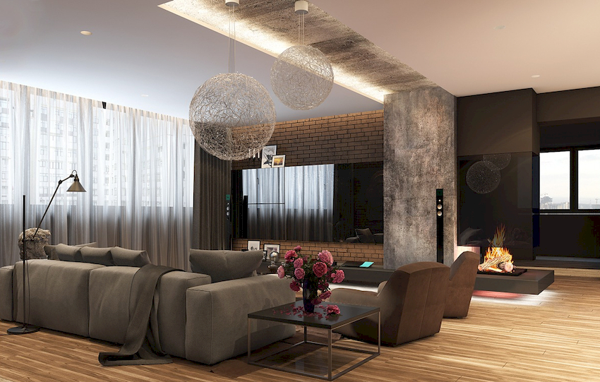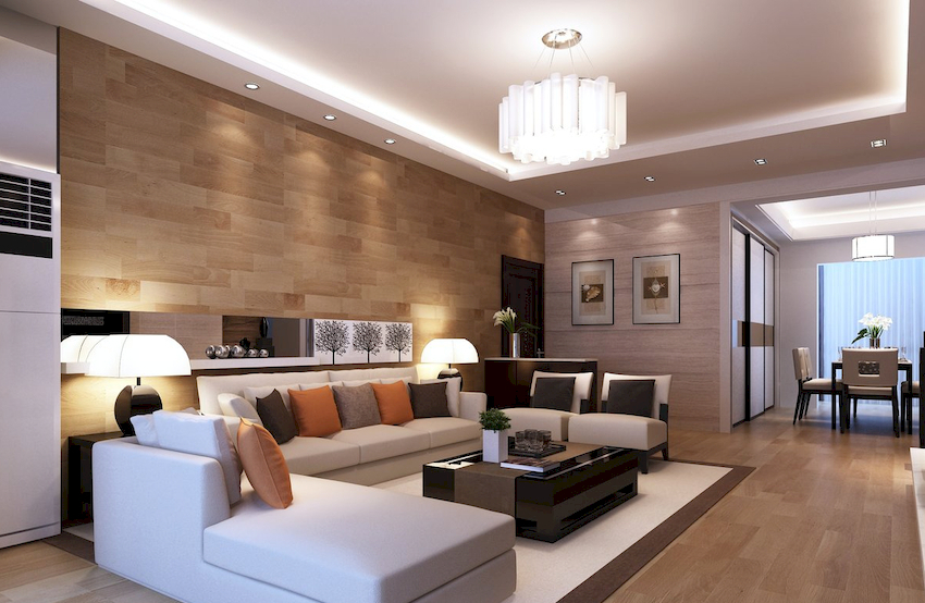 Keamatan dan kaedah pencahayaan dipilih bergantung pada fungsi zon. Candelier siling di ruang tamu tidak harus berada di tengah-tengah bilik. Ini dapat digunakan untuk menerangi kawasan lembut atau tempat di dekat perapian. Lokasi sumber cahaya ditentukan oleh perabot bilik.