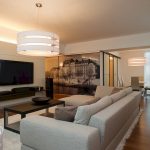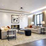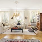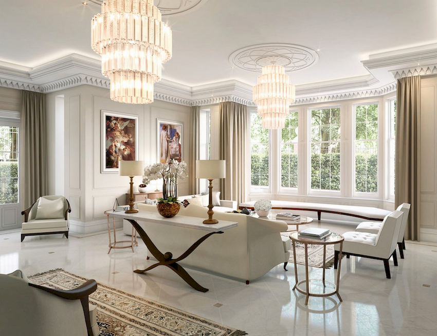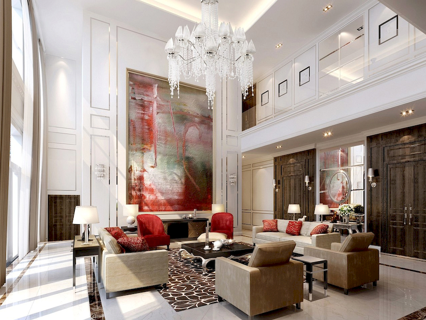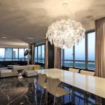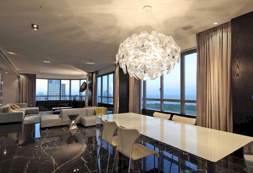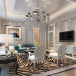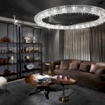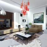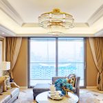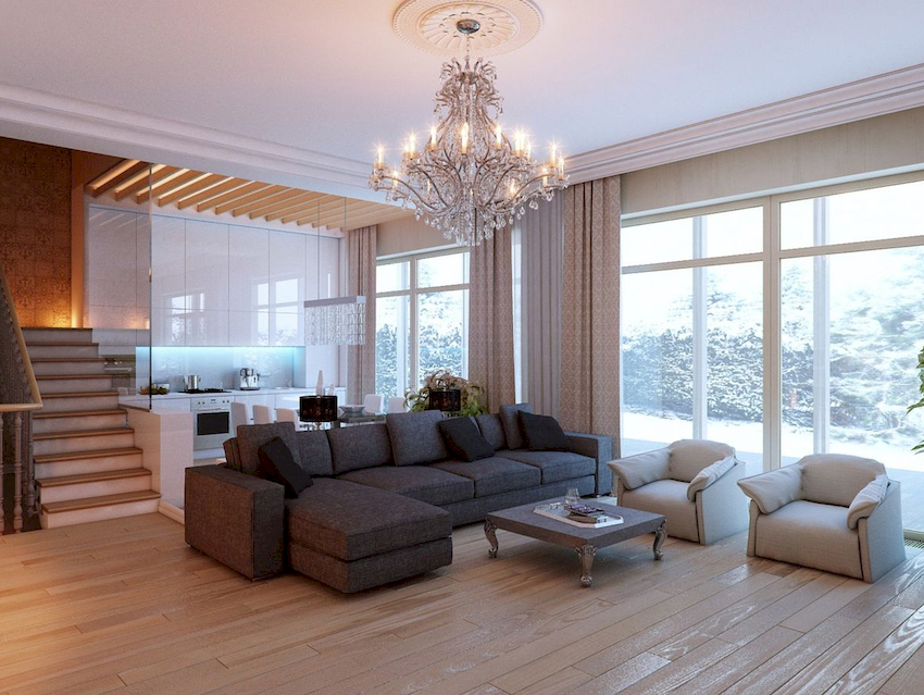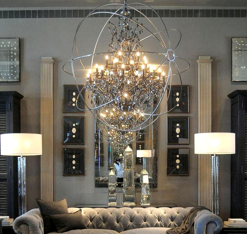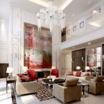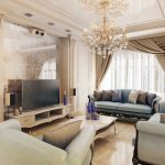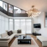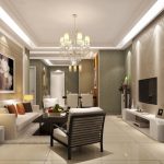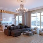 Candelier spektakuler di ruang tamu dengan gaya moden