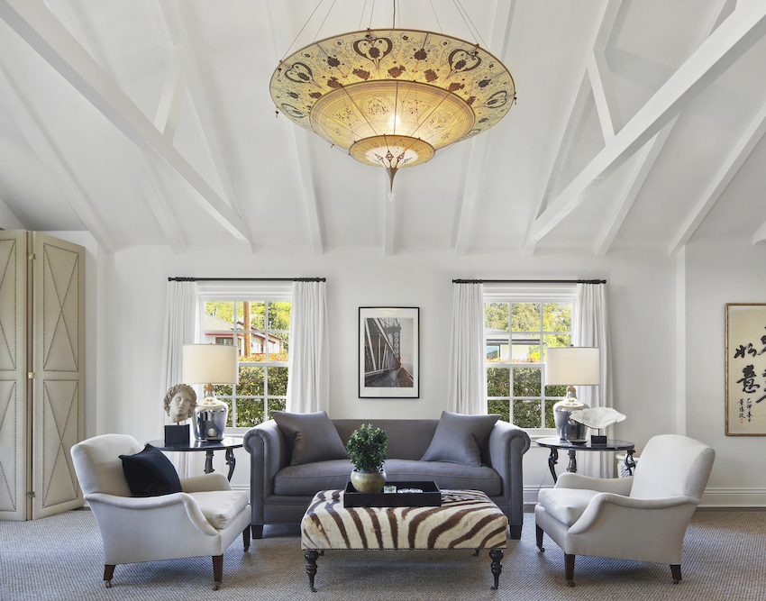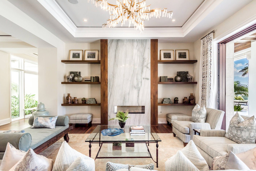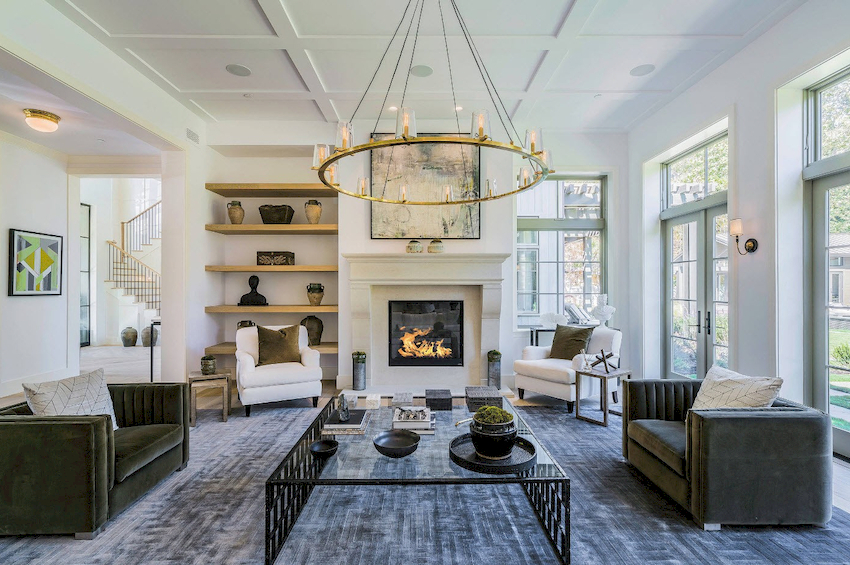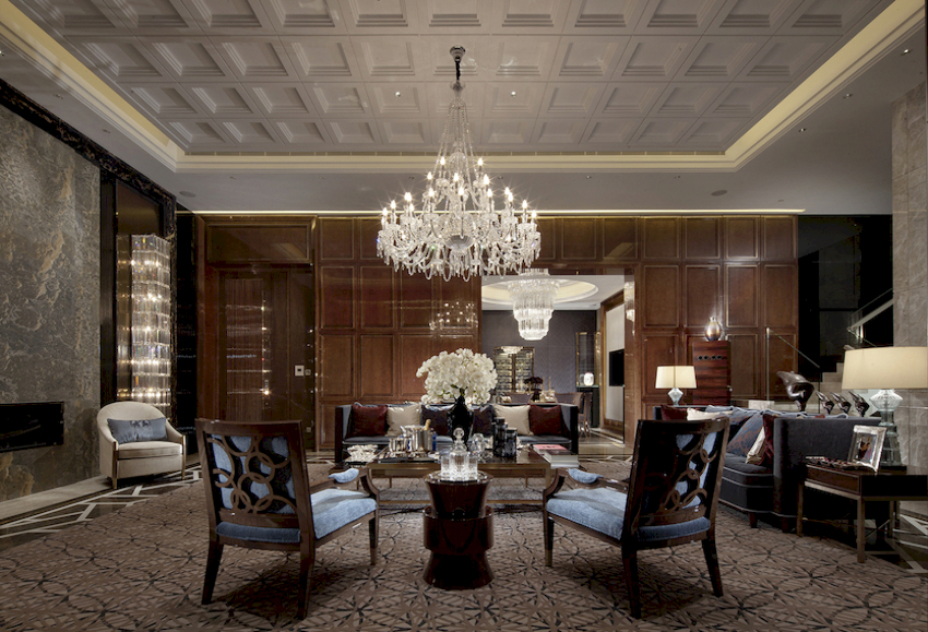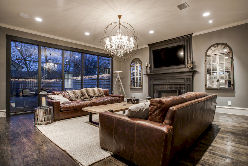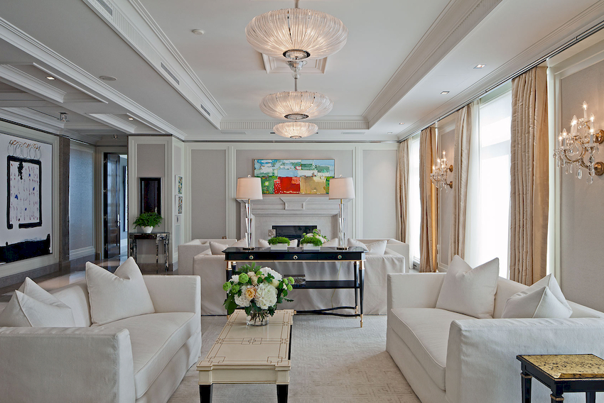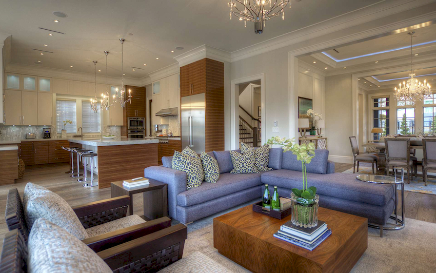 Candelier spektakuler di ruang tamu dengan gaya moden