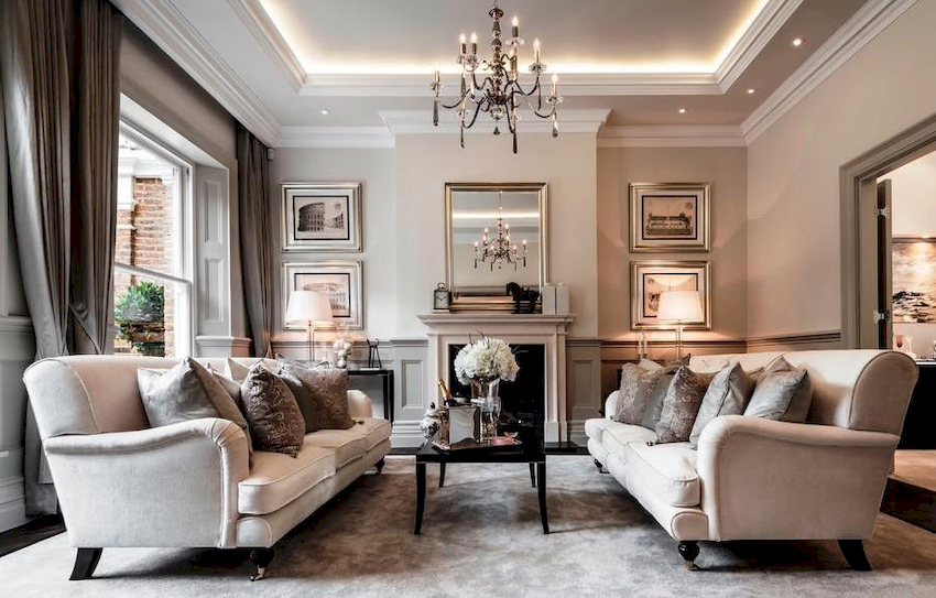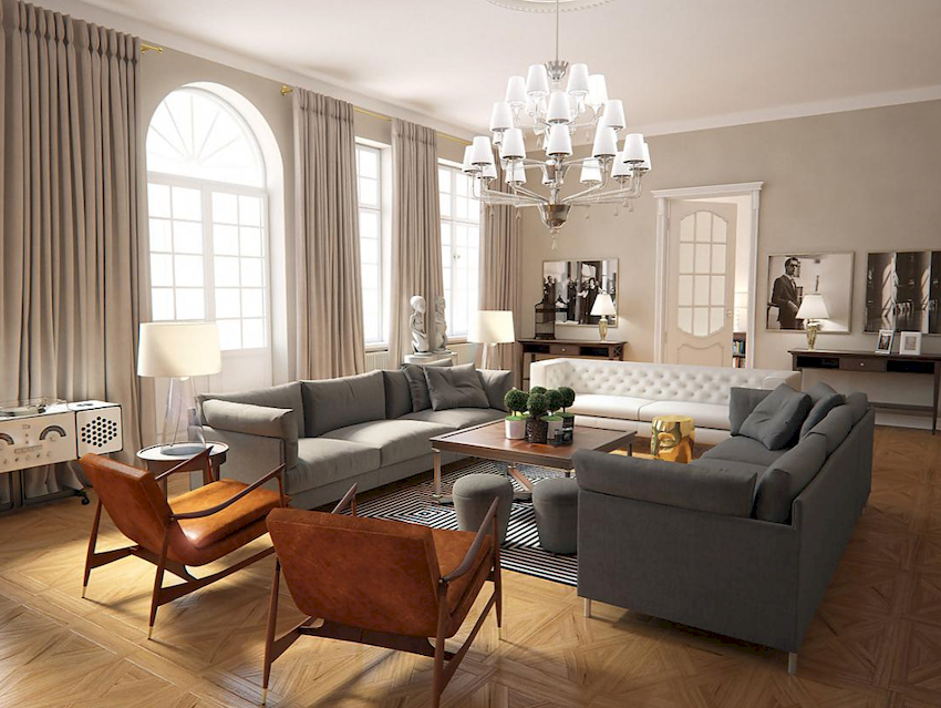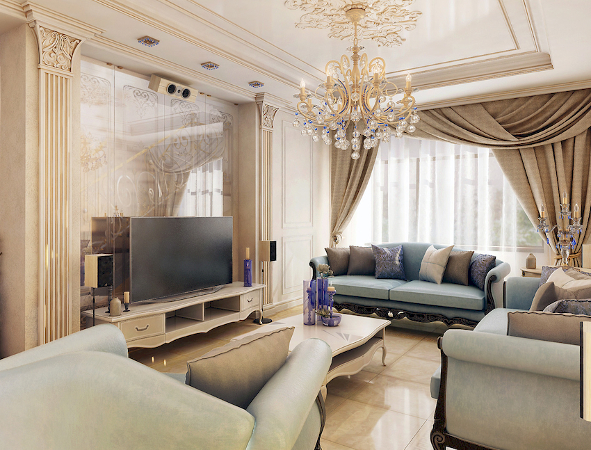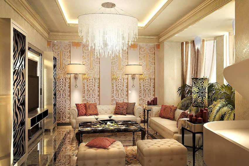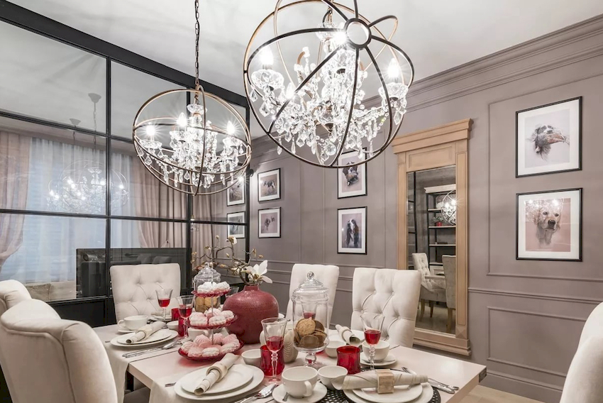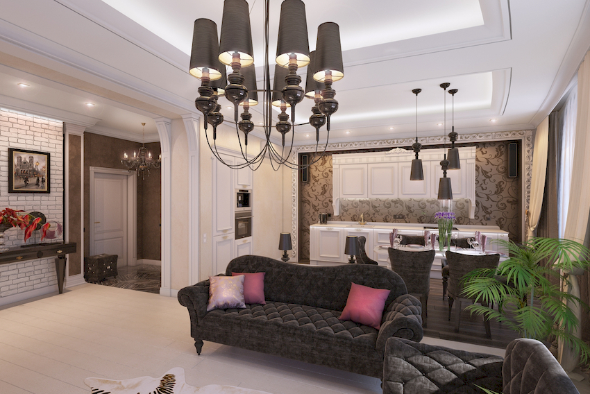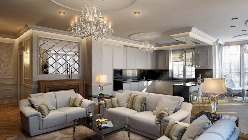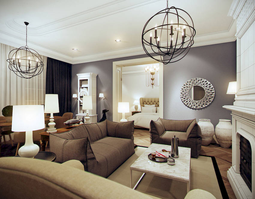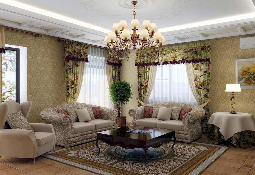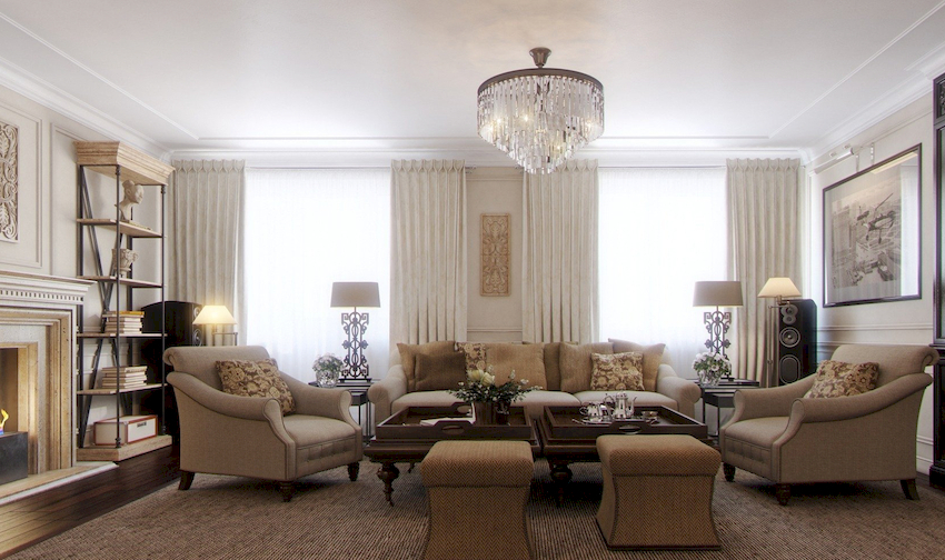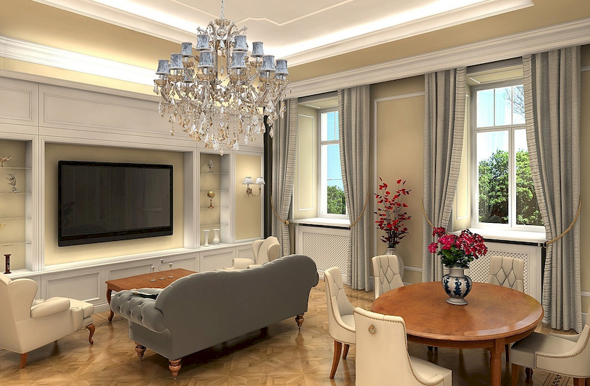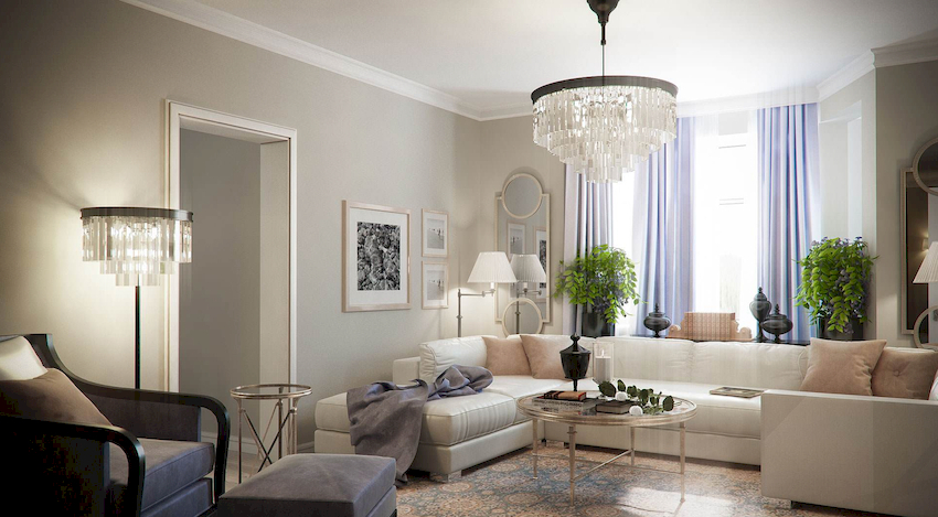 Gaya candelier untuk ruang tamu dengan reka bentuk klasik