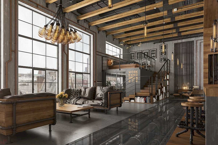 Candelier siling reka bentuk yang tidak biasa secara organik akan sesuai dengan gaya loteng, yang menyerupai roda dengan lampu dipasang di dalamnya.
