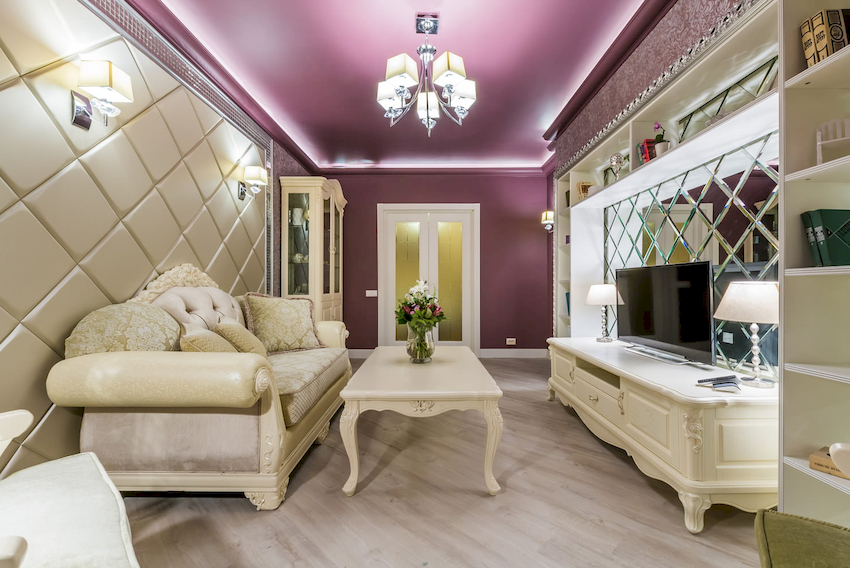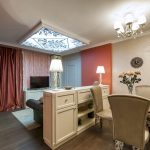 Ciri-ciri pilihan candelier di dewan di siling regangan