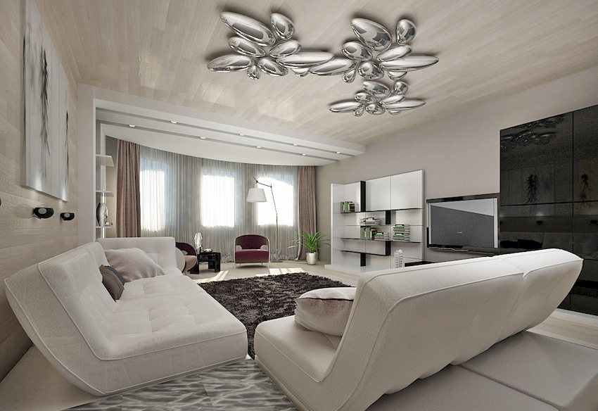 Pelbagai candelier ruang tamu moden membolehkan anda memilih kelengkapan pencahayaan untuk ukuran dan reka bentuk bilik apa pun. Chandelier berbeza dalam jumlah dan jenis lampu yang digunakan, yang membolehkan anda bermain dengan pencahayaan, menetapkan intensiti fluks cahaya yang diperlukan. Peranti pencahayaan disajikan dalam berbagai bentuk. Terdapat komposisi abstrak, model dalam bentuk bentuk geometri, produk di mana pelbagai jenis lampu digabungkan, dan tiruan lilin dibuat.