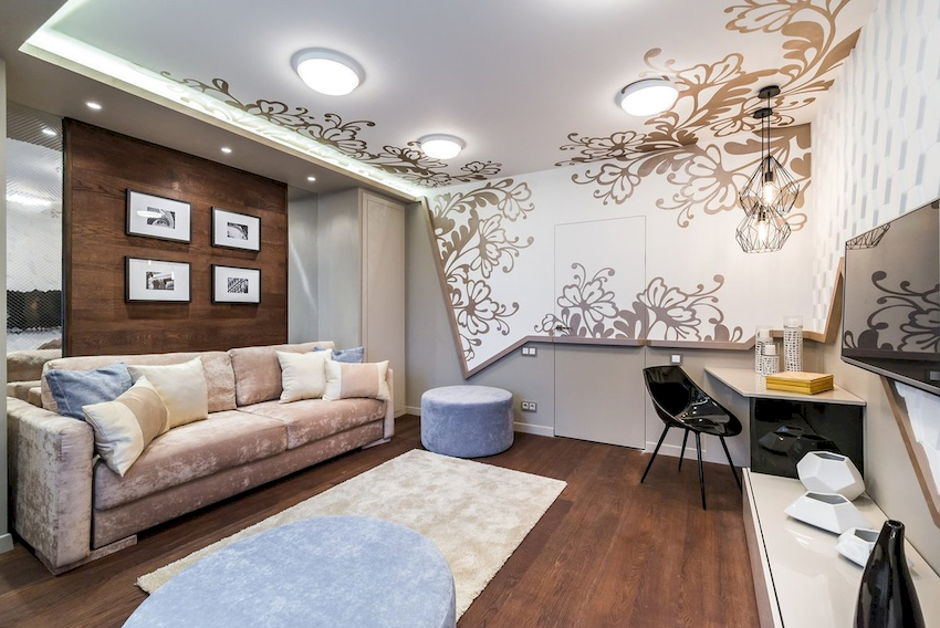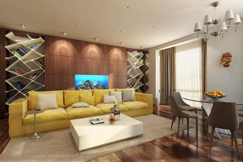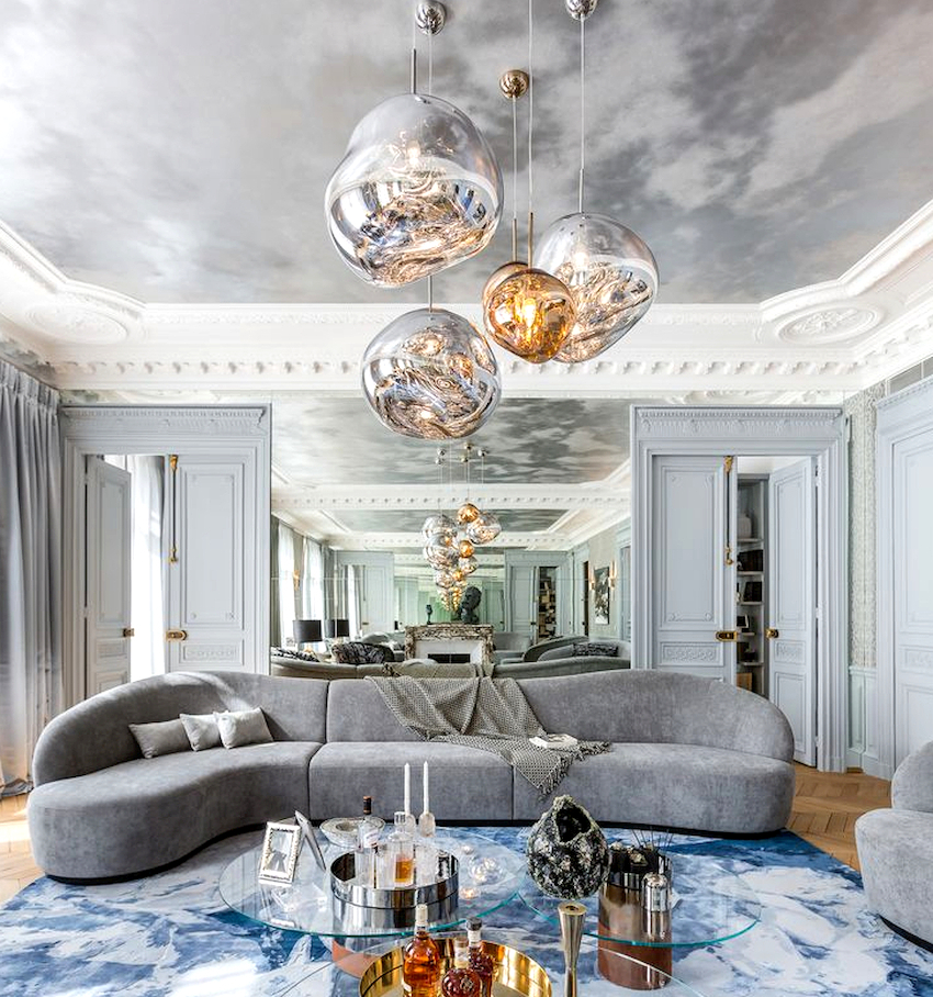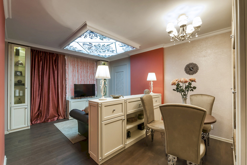 Model candelier mendatar setinggi 0,5 m akan kelihatan paling organik di dewan dengan siling regangan
