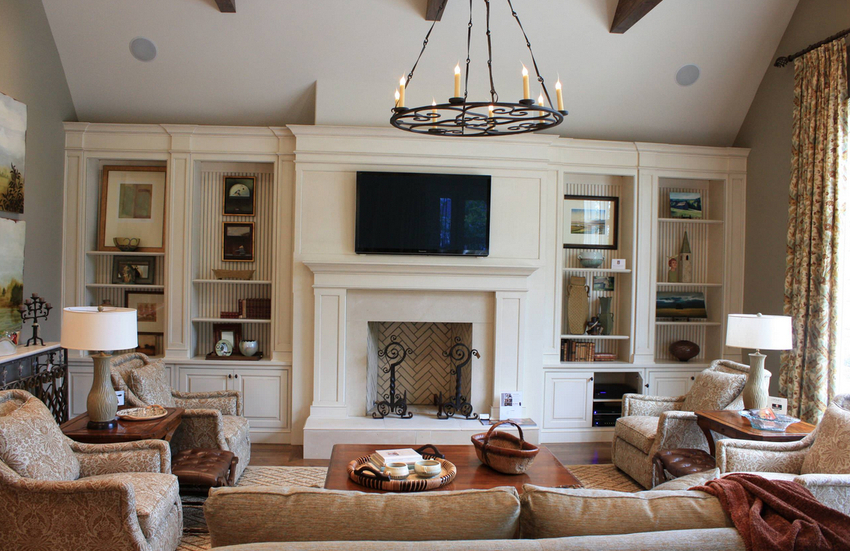 Candelier siling tradisional di ruang tamu dengan gaya moden terdiri daripada bingkai, penutup lampu, warna, reflektor dan penyebar. Semua komponen dilekatkan pada badan. Di bahagian bawah terdapat satu atau lebih soket, di mana mentol dan penyebar dipasang. Pangkalan dengan tanduk meliputi pendawaian elektrik. Reflektor adalah cermin yang memantulkan dan menyebarkan cahaya di seluruh perimeter. Unsur-unsur seperti itu adalah bahagian dari candelier overhead.