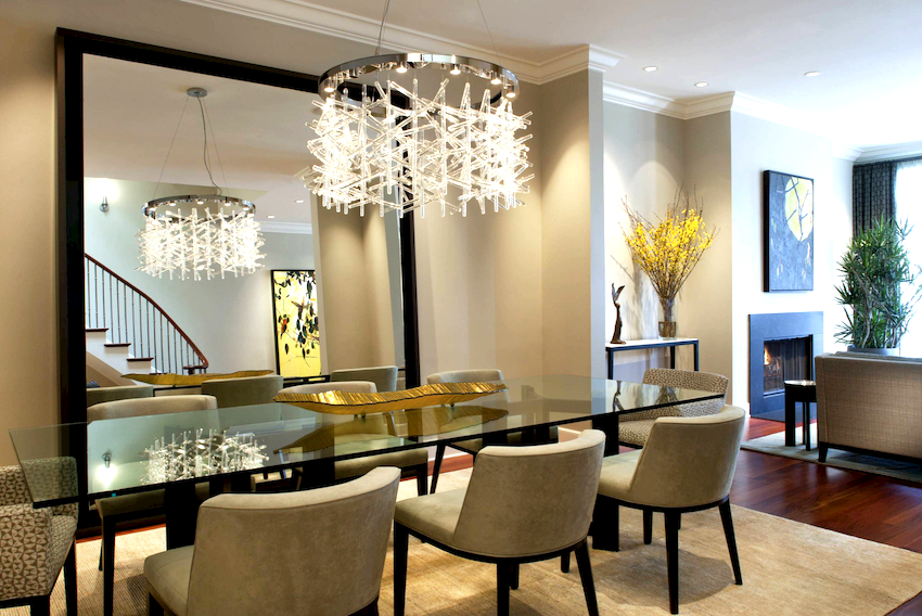 Sekiranya menggunakan dua candelier, tidak perlu memilih model yang sama. Mereka mungkin berbeza dari segi saiz atau reka bentuk. Adalah mustahak bahawa produk-produknya hampir sesuai dengan reka bentuk gaya. Teknik ini akan menimbulkan kesan kejutan, menjadikan reka bentuk bilik menjadi unik. Di bilik dengan siling tinggi, candelier dapat terletak di ketinggian yang berbeza.