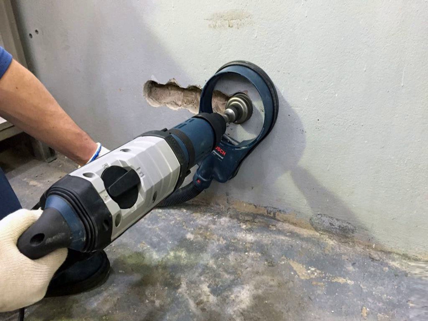 Kedalaman sarang juga penting. Apabila lubang terbentuk di dinding dan konkrit diambil sampel, anda perlu memastikan kedalamannya sesuai dengan kedalaman soket. Adalah wajar bahawa tepi kotak belakang rata dengan satah dinding. Untuk mengelakkan sarang terlalu dalam, anda boleh membuat tanda pada mahkota itu sendiri dan memfokuskannya pada prosesnya.