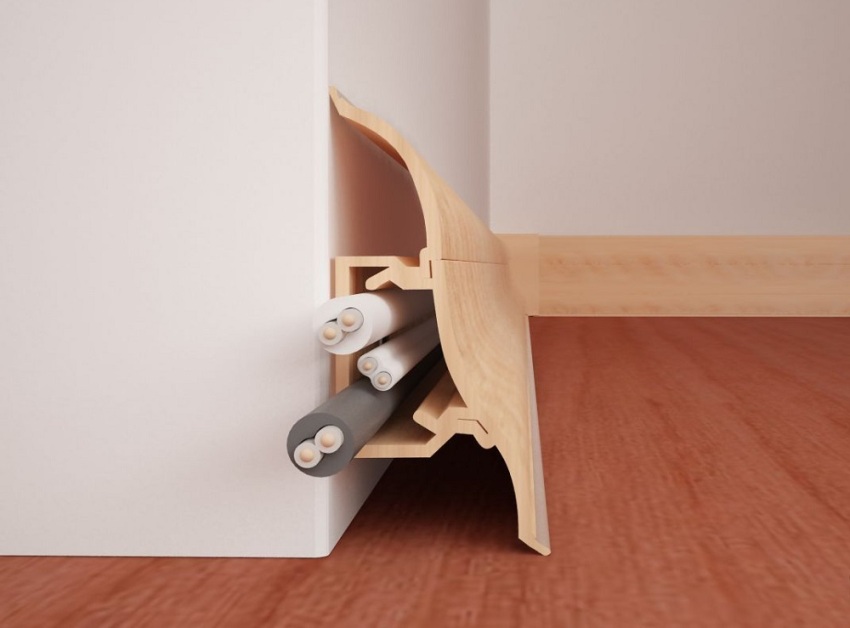 Untuk mempermudah pemasangan kabel di apartmen, disarankan untuk melakukan pendawaian di lantai, misalnya, di rongga papan bawah
