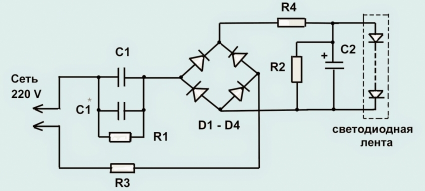 Pengoperasian candelier siling berdasarkan penukar konvensional. Pada output, elemen ini menghasilkan voltan sekitar 5 volt. Penukar boleh mempunyai reka bentuk yang berbeza, yang menggunakan kapasitor dan dioda, atau berfungsi sesuai dengan litar jambatan.