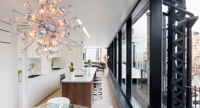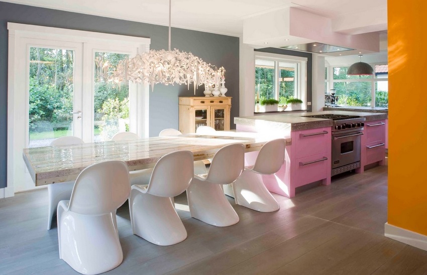Untuk mempelbagaikan dapur dan menjadikannya moden, ada baiknya membeli candelier satelit dengan lampu LED, yang masih popular hingga kini.