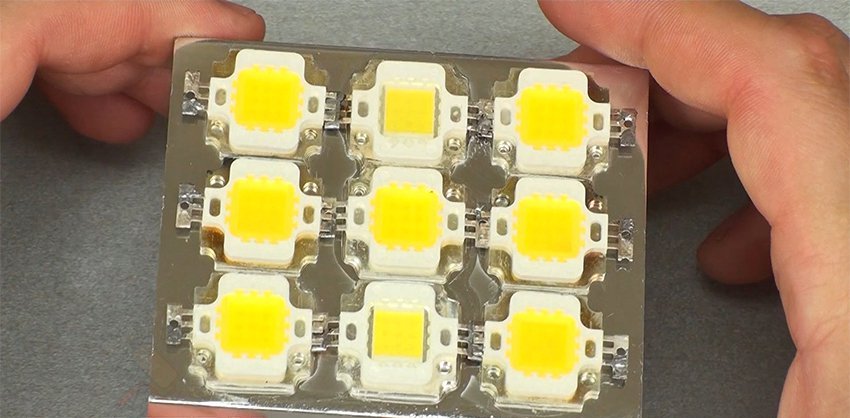 Nasihat berguna!Lampu sorot LED di peranti mereka mempunyai satu set lampu diod. Sekiranya salah satu diod gagal, maka lampu mini yang lain terus beroperasi dengan kehilangan kecekapan minimum. Kelebihan ini tidak biasa untuk lekapan lampu lain selain lampu LED.