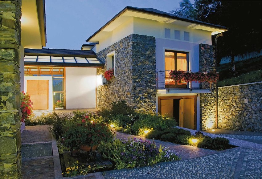 Untuk pencahayaan hiasan, lampu yang kurang kuat digunakan - dari 5 hingga 20 W dengan sudut hamburan hingga 90 °. Lampu carian dengan LED pelbagai warna kelihatan asli.