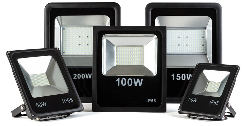 Untuk menerangi hangar yang luas, gudang, tapak perindustrian, dan juga lebuh raya, lampu sorot LED luaran 200 W dan lebih tinggi berjaya digunakan. Lampu-lampu ini dilengkapi dengan LED dengan jangka hayat sehingga 100,000 jam.
