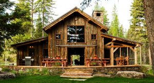Gaya negara dalam reka bentuk bangunan dipinjam dari filem-filem mengenai peternakan Amerika. Dalam kes ini, fasad biasanya berhadapan dengan papan klap, papan kayu atau bahan lain seperti kayu. Kadang-kadang fasad, selain tanglung, dihiasi dengan elemen hiasan lain.