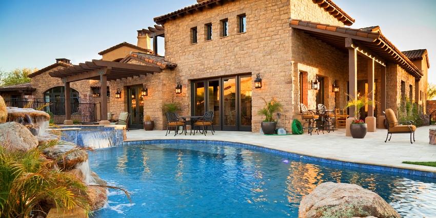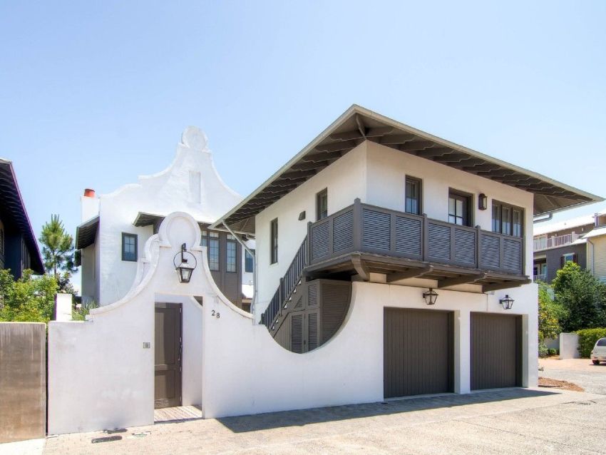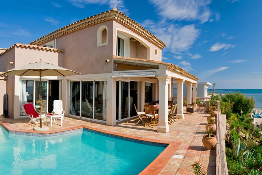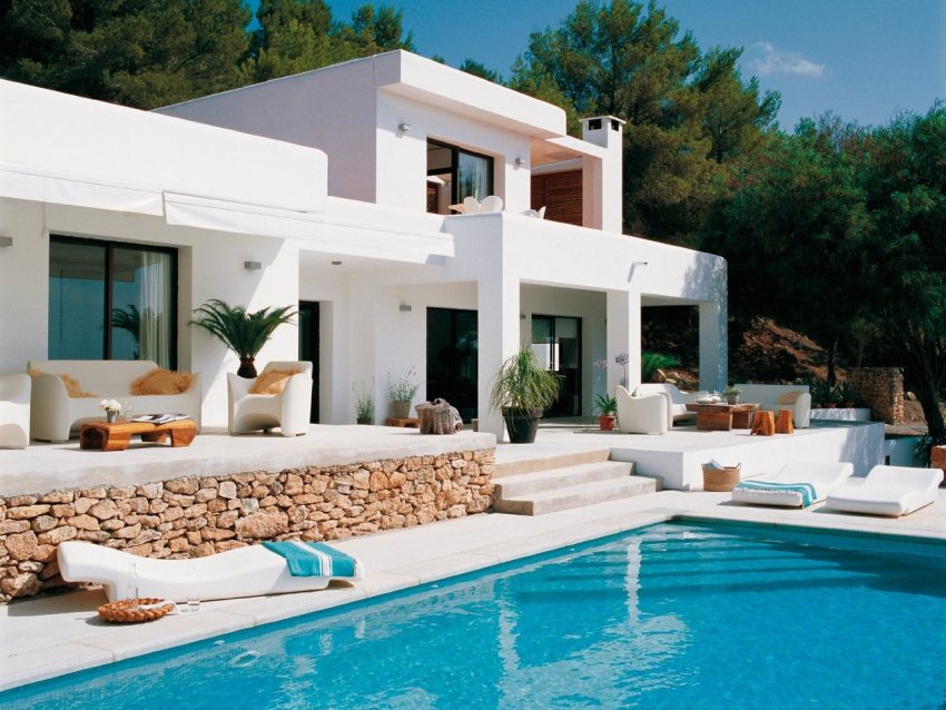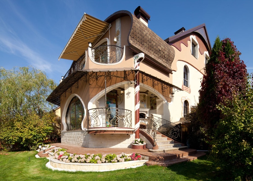 Selalunya, dalam reka bentuk fasad, motif Mediterranean juga digunakan, yang memperuntukkan penggunaan warna-warna hangat pada fasad. Sebagai tambahan kepada tingkap utama, boleh diterima untuk membuat sebilangan tingkap kecil di fasad, memberikan kesan tak terhingga pada bangunan. Rumah sebegini sering mempunyai balkoni, ceruk dan elemen lain yang berbentuk separa bulat. Dalam kes ini, dinding luaran terutamanya selesai dengan pelbagai campuran plaster.