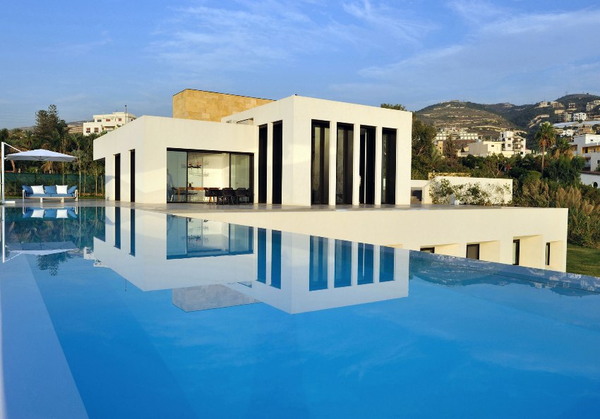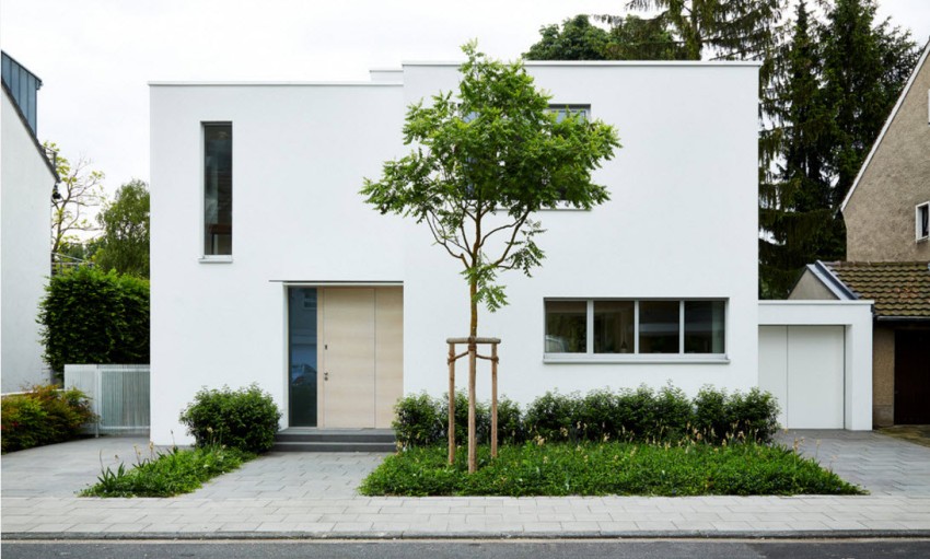 Pilihan yang paling popular untuk menyelesaikan fasad adalah gaya minimalis, yang lebih suka penggunaan garis yang jelas dan bentuk laconic. Tidak ada keinginan untuk kemewahan atau kepura-puraan di sini. Tidak termasuk penggunaan hiasan yang melimpah di fasad dan penggunaan warna yang terlalu terang. Ciri ciri lain adalah kesederhanaan fasad dan ketiadaan kemasan yang kompleks. Minimalisme menyediakan sebilangan besar tingkap, mewujudkan luaran monokrom dengan warna terang. Dinding luaran dihiasi dengan mewah dengan lampu LED, yang menonjolkan elemen fasad yang paling ketara.