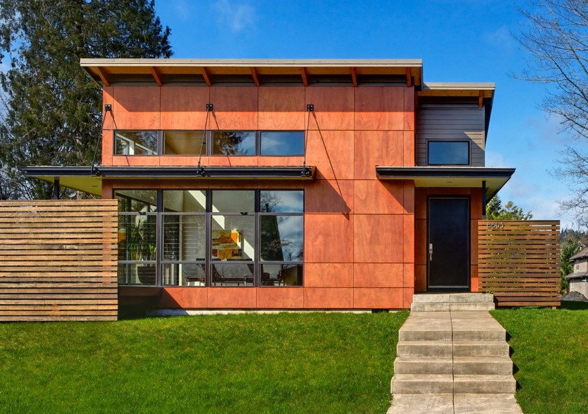 - 8 Hiasan luar rumah dengan panel fasad simen serat, sisi logam dan simen