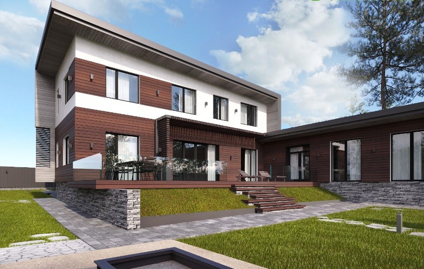 Penting! Apa sahaja gaya yang dipilih untuk menyelesaikan fasad, perkara utama adalah sesuai dengan persekitaran dan suasana pemiliknya. Penting untuk memikirkan reka bentuk luaran bahkan sebelum membuat projek, kerana beberapa pilihan untuk bahan fasad dibezakan dengan berat yang besar, yang asasnya harus dirancang.
