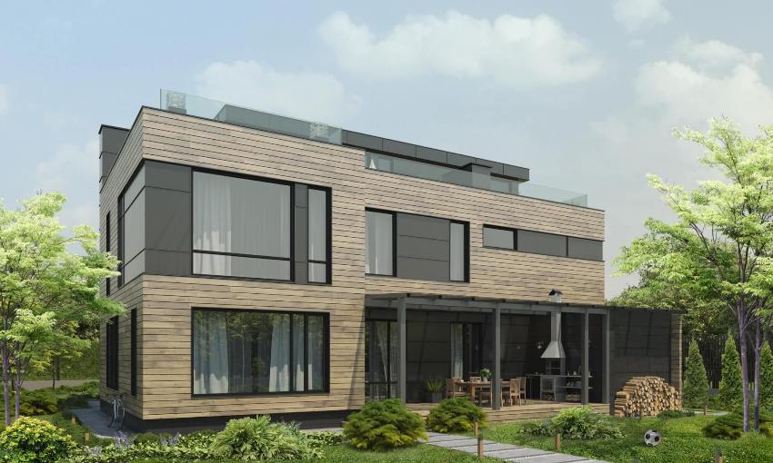 Bahan yang digunakan untuk merancang fasad rumah tidak boleh menunjukkan kecenderungan untuk cuaca dan pencucian.