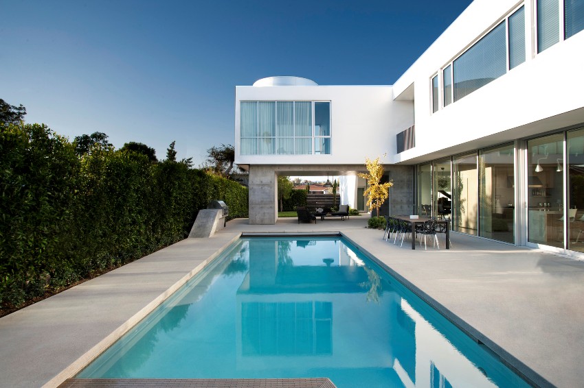 Gaya berteknologi tinggi agak dekat dengan minimalisme, ia juga mengandaikan garis-garis yang jelas dan bentuk geometri biasa. Anda sering dapat melihat penggunaan logam berpihak pada warna putih atau kelabu, tetapi fasad terpampang dalam skema warna yang sama juga popular. Penting semasa membuat reka bentuk berteknologi tinggi untuk melengkapkan rumah dengan barang-barang kejuruteraan berfungsi yang juga akan memainkan peranan sebagai hiasan. Ini boleh menjadi tingkap besar dengan bentuk geometri yang betul, bahkan bentuk bulat yang lebih baik, yang dengan bantuan alat kawalan jauh sepenuhnya tersebar ke sisi, atau pintu yang tidak biasa.