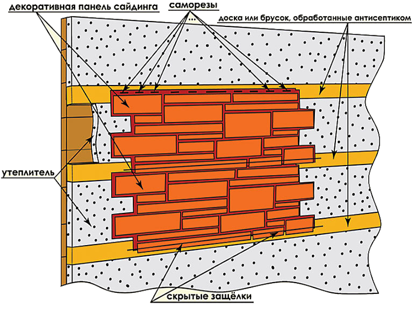Sebilangan besar bata merah diperbuat daripada vinil atau logam. Panel ini ringan. Faktor ini sangat memudahkan proses pelapisan. Panel yang mengulangi parameter bata semula jadi sesuai untuk selubung hampir semua elemen struktur.