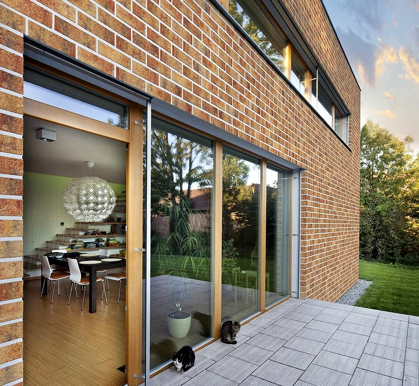 Dan harga peletakan batu bata lebih rendah daripada kos bahan batu. Keupayaan memasang panel secara bebas menjadikan proses pelapisan dua kali ganda menjimatkan kos.Jurang udara yang muncul di antara dinding rumah dan panel menyediakan pengudaraan ke luar bangunan, dan juga membantu mengekalkan haba di tempat.