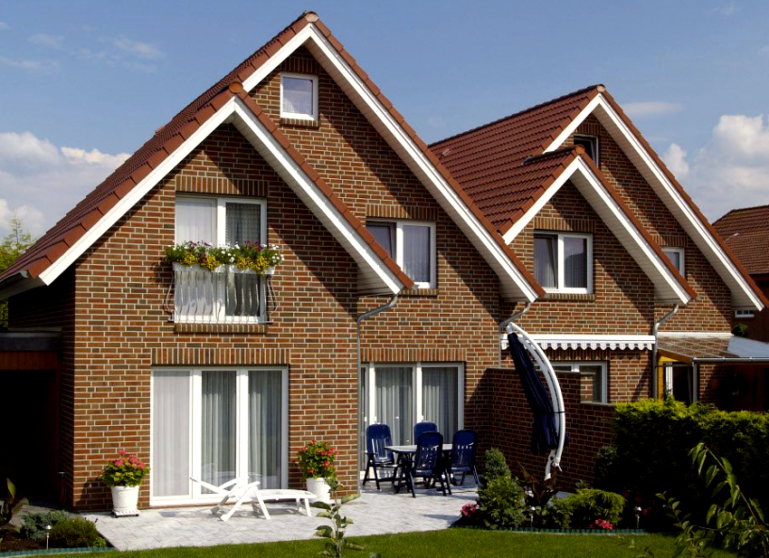Rumah bata merah kelihatan padat, keras dan terang pada masa yang sama. Mereka sempurna dilatarbelakangi hijau pada musim bunga dan musim panas, dan salji di sebelah bangunan seperti itu kelihatan lebih putih. Hiasan tingkap paling sering berbeza, yang secara positif mempengaruhi persepsi keseluruhan rumah secara keseluruhan.