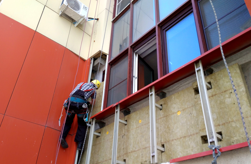 Setelah pemasangan profil dan pendakap, serta peletakan lapisan penebat haba, pemasangan pelapisan hiasan dilakukan