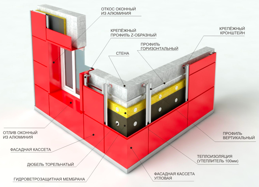 Sistem fasad berventilasi adalah struktur multi-lapisan, yang dipasang pada bahagian luar dinding bangunan dengan menggunakan profil dan baut